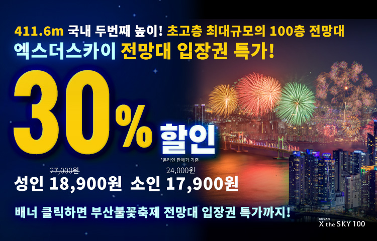 [★한정특가!] 100층 전망대에서 감상하는 환상적인 부산의 전경! 엑스더스카이